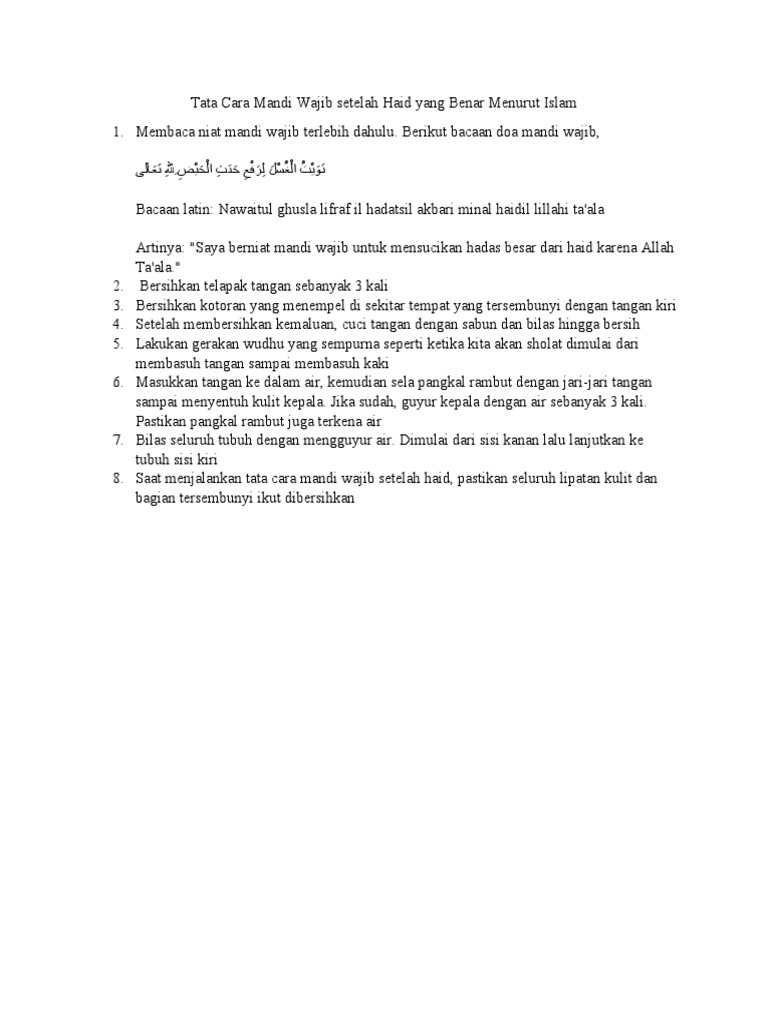 Mandi wajib memiliki tata cara tertentu yang harus dilakukan dengan benar agar menjadi sah. Berikut langkah-langkahnya: