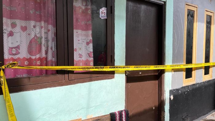 Wanita berusia 51 tahun ini ditemukan tewas di kontrakannya pada Kamis (16/4/2026) pukul 01.30 WIB. Lokasi kejadian telah dipasangi garis kuning polisi sehingga tidak bisa dilalui oleh warga. Di depan rumah, terdapat sebuah mobil yang tertutup dan dua kursi plastik hijau serta merah yang diletakkan di area depan rumah. Lampu teras rumah masih menyala, dan dari pengamatan terlihat sebuah lemari kayu dan lemari sepatu yang hanya berisi satu pasang sepatu. Jendela rumah tampak tertutup gorden putih, sementara di bagian depan terdapat sebuah toren air yang berdiri.